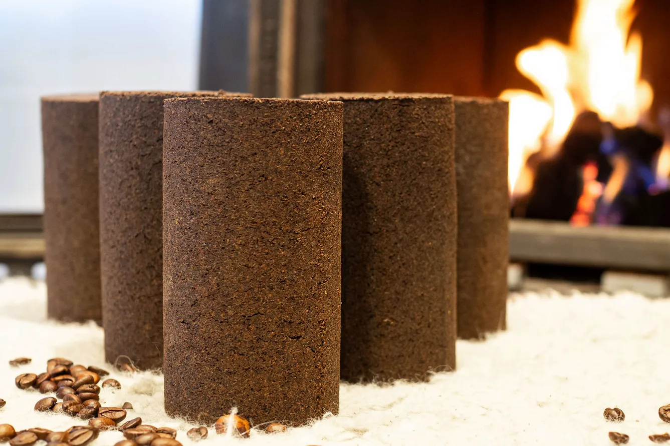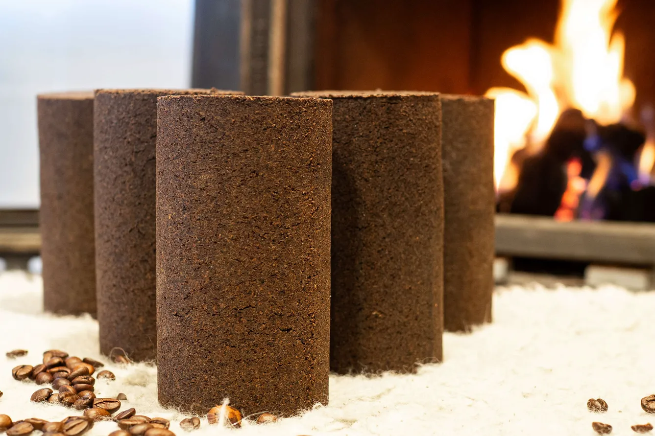International news about Paahtu Kahviklapi, a sustainable fuel solution made from recycled coffee grounds and an alternative to firewood.